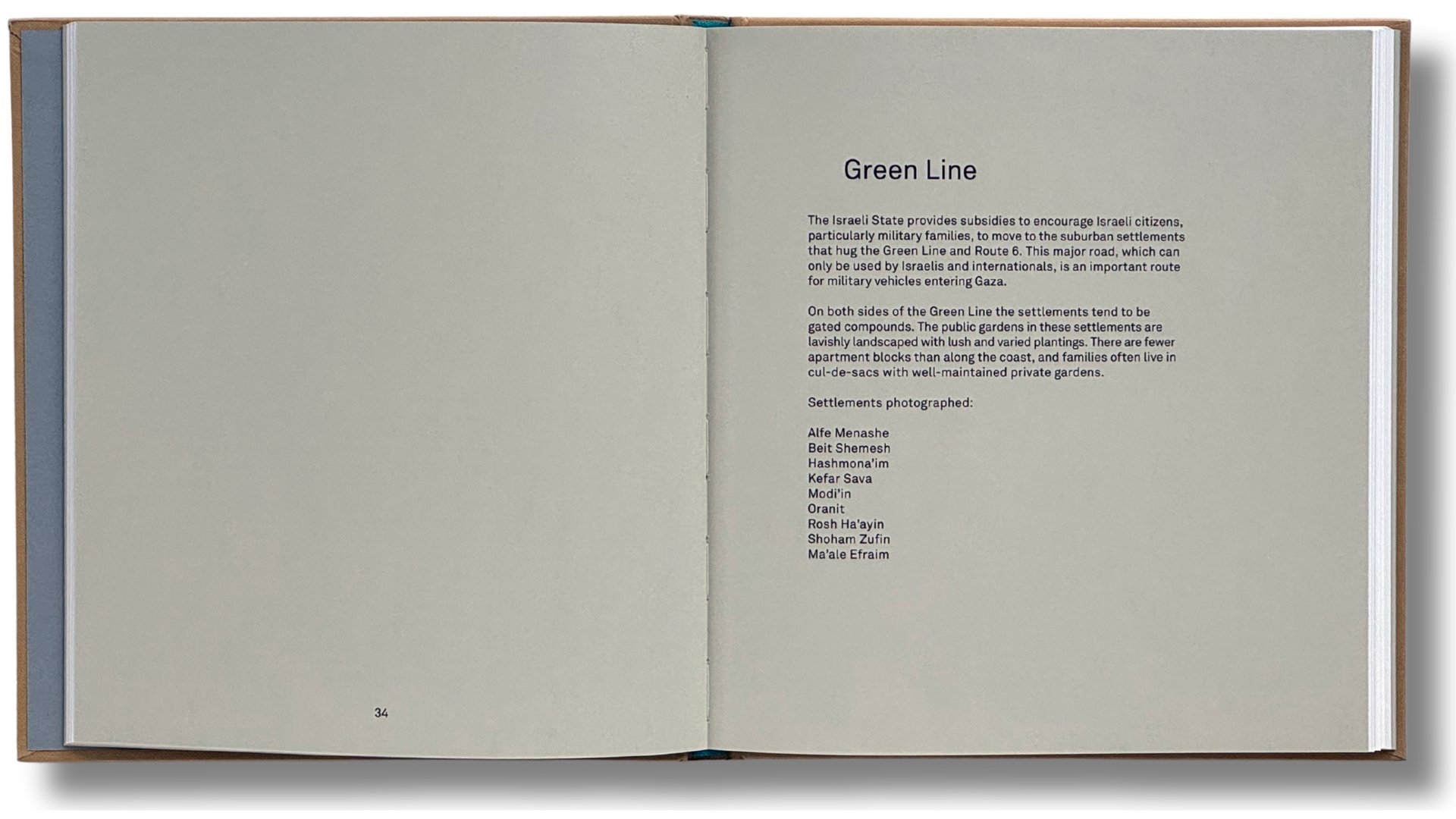 Between 2010 and 2013, Silva made a series of visits to Israeli occupied territories between the Mediterranean and the Jordan River. She travelled across twenty-two Israeli settlements making photographs of public and private gardens. Silva presents this visually rich photographic journey and examines how the gardens in these occupied lands are both material and symbolic evidence of a continuing colonisation.