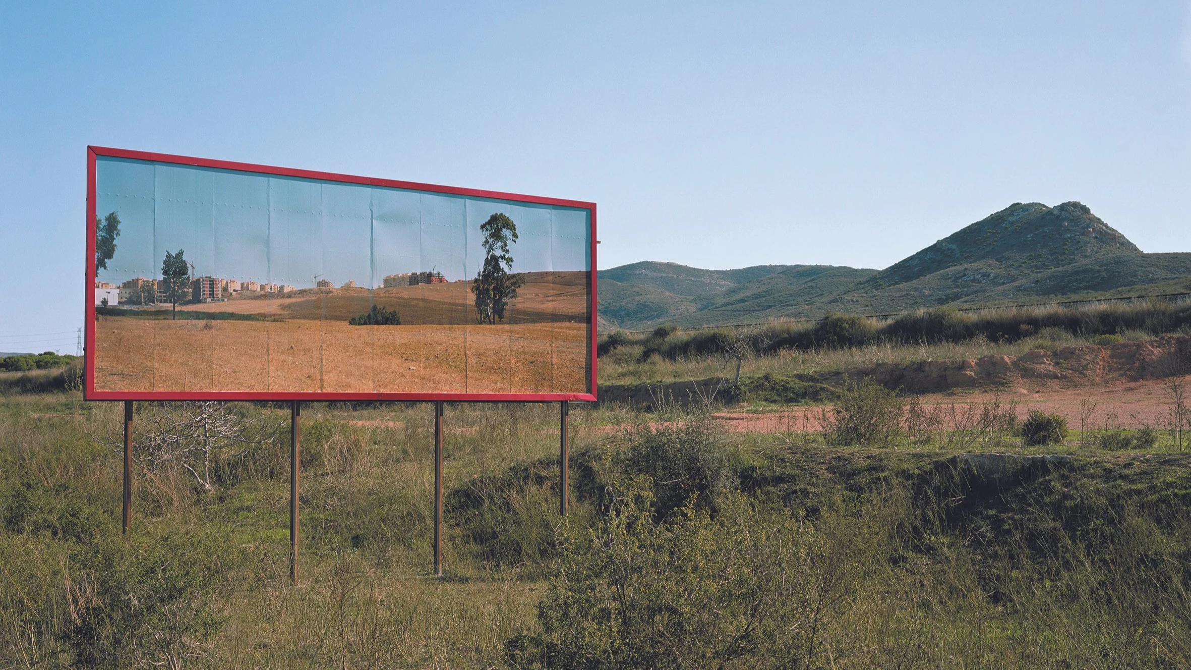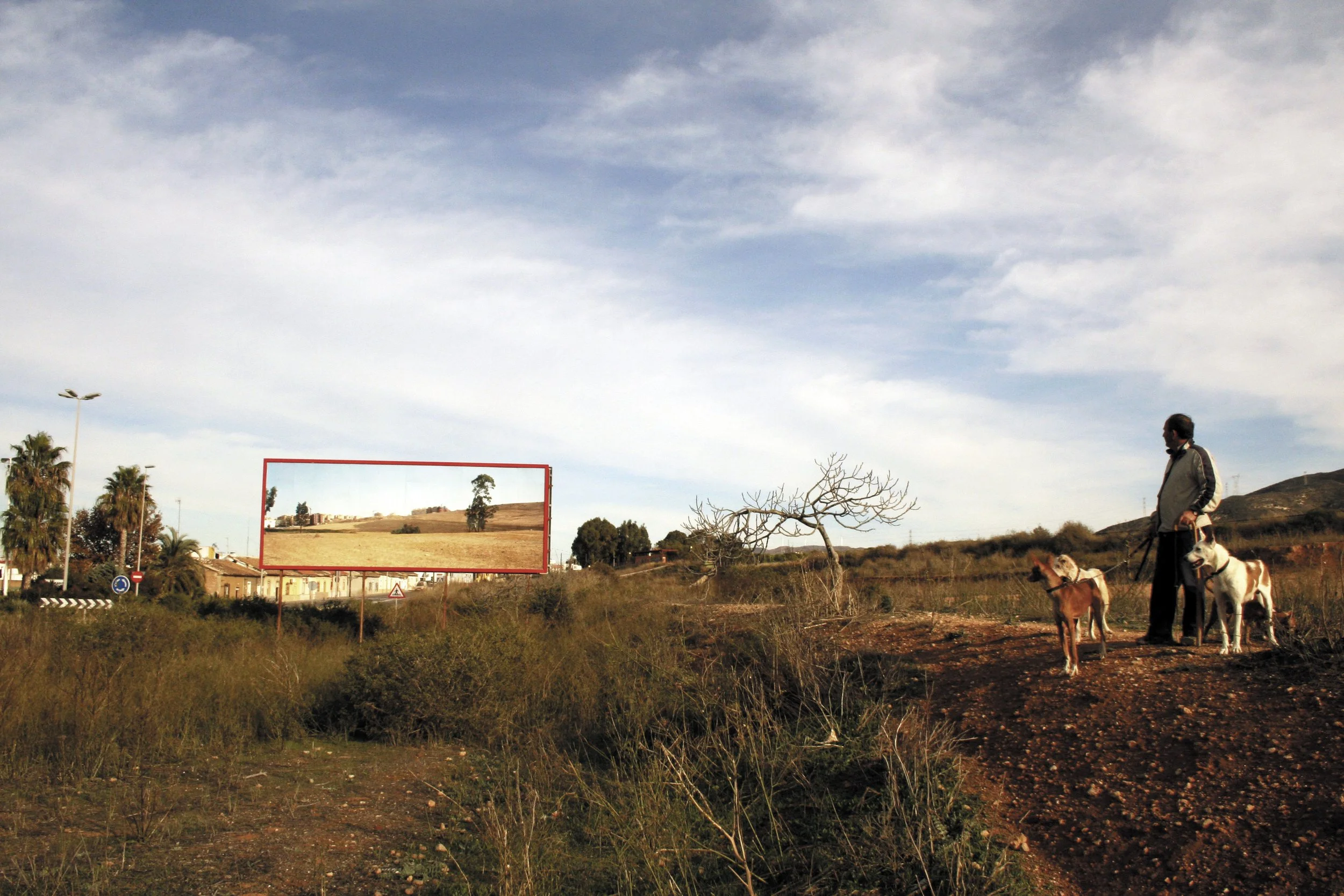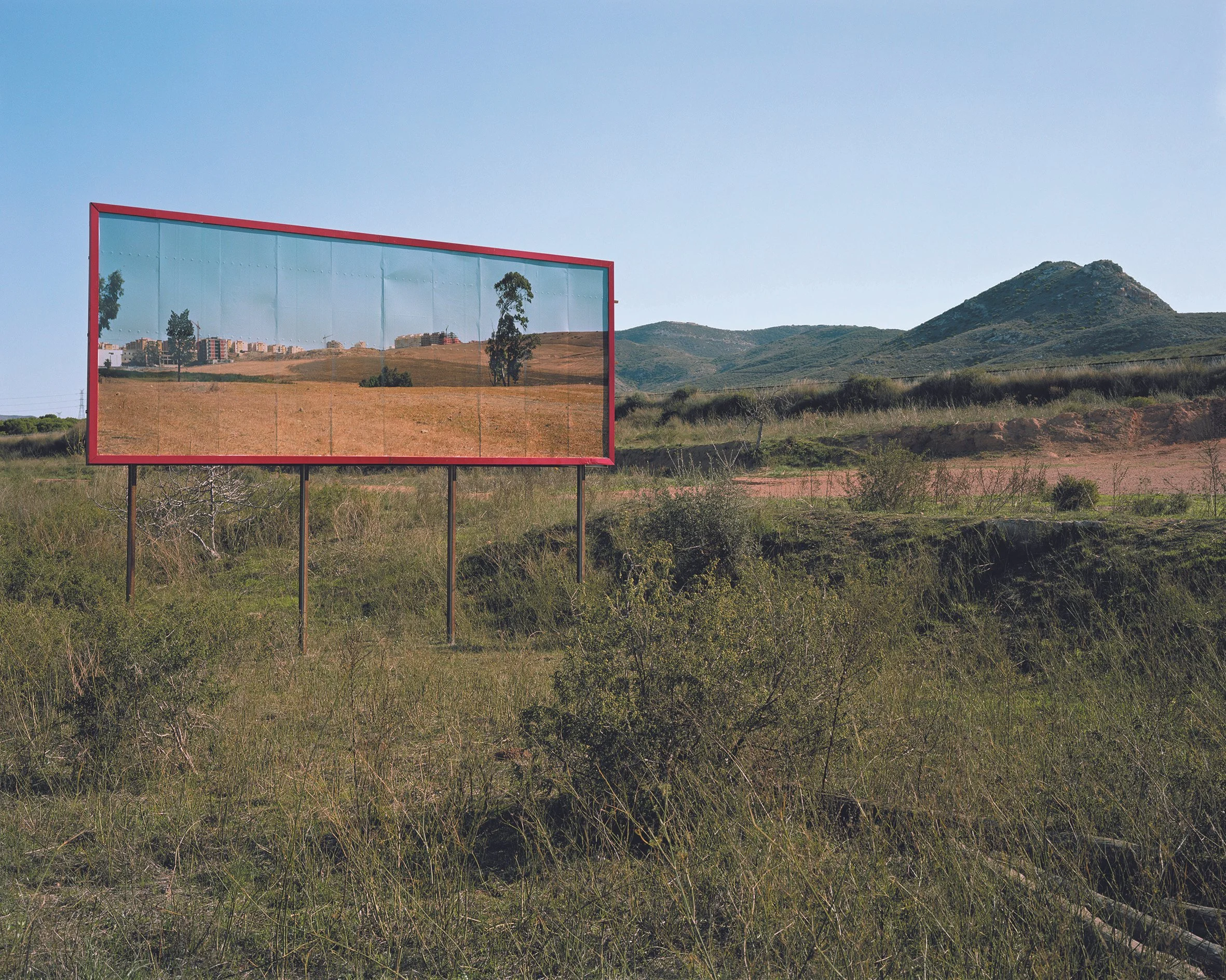 To consider these connected and overlapping Mediterranean landscapes Corinne Silva travelled along the northern Moroccan coast from Tangier towards the Algerian border, and made a series of landscape photographs. She then created an intervention in the Spanish landscape by installing three of these images on 8 by 3 metre billboards in specific locations in the region of Murcia.