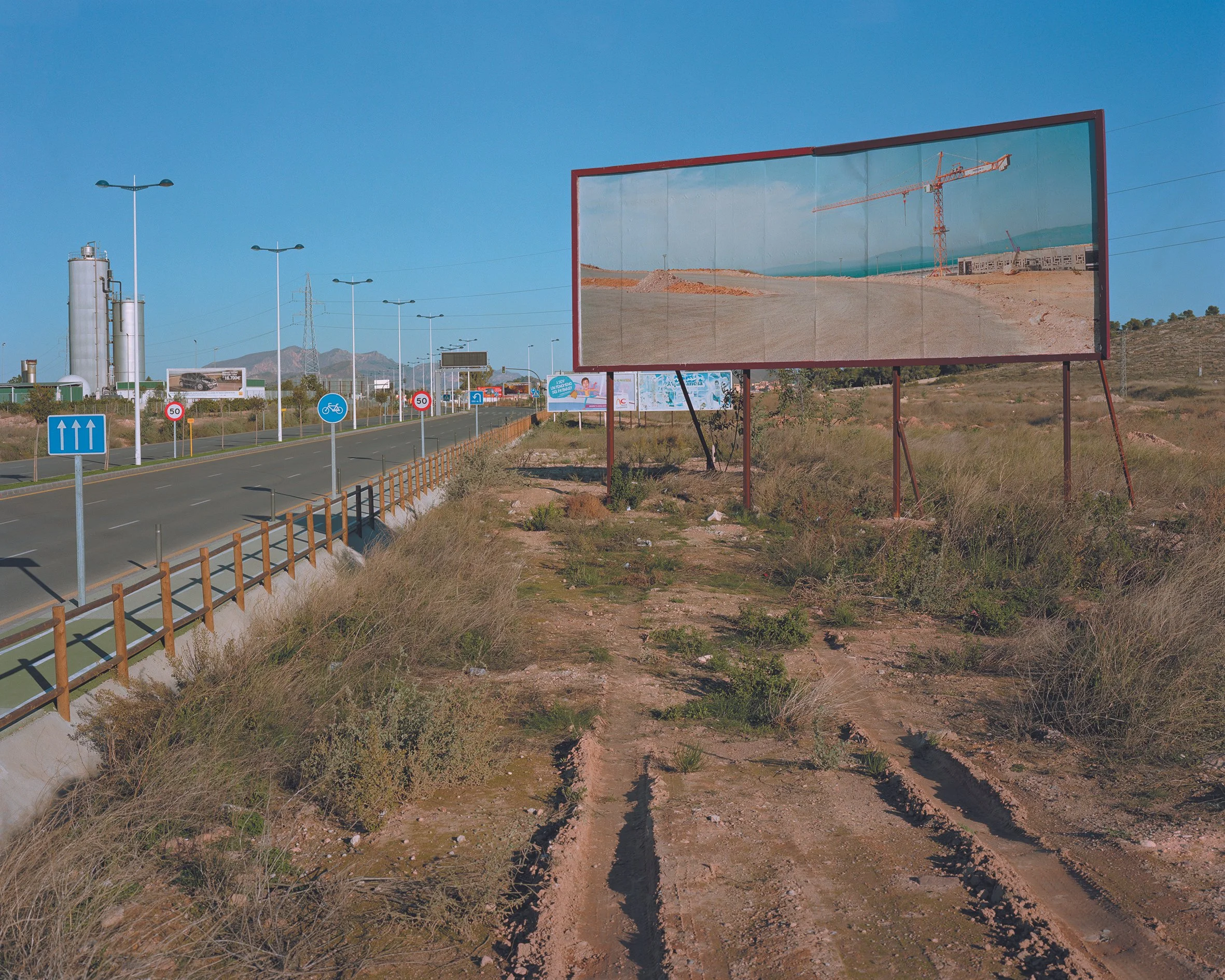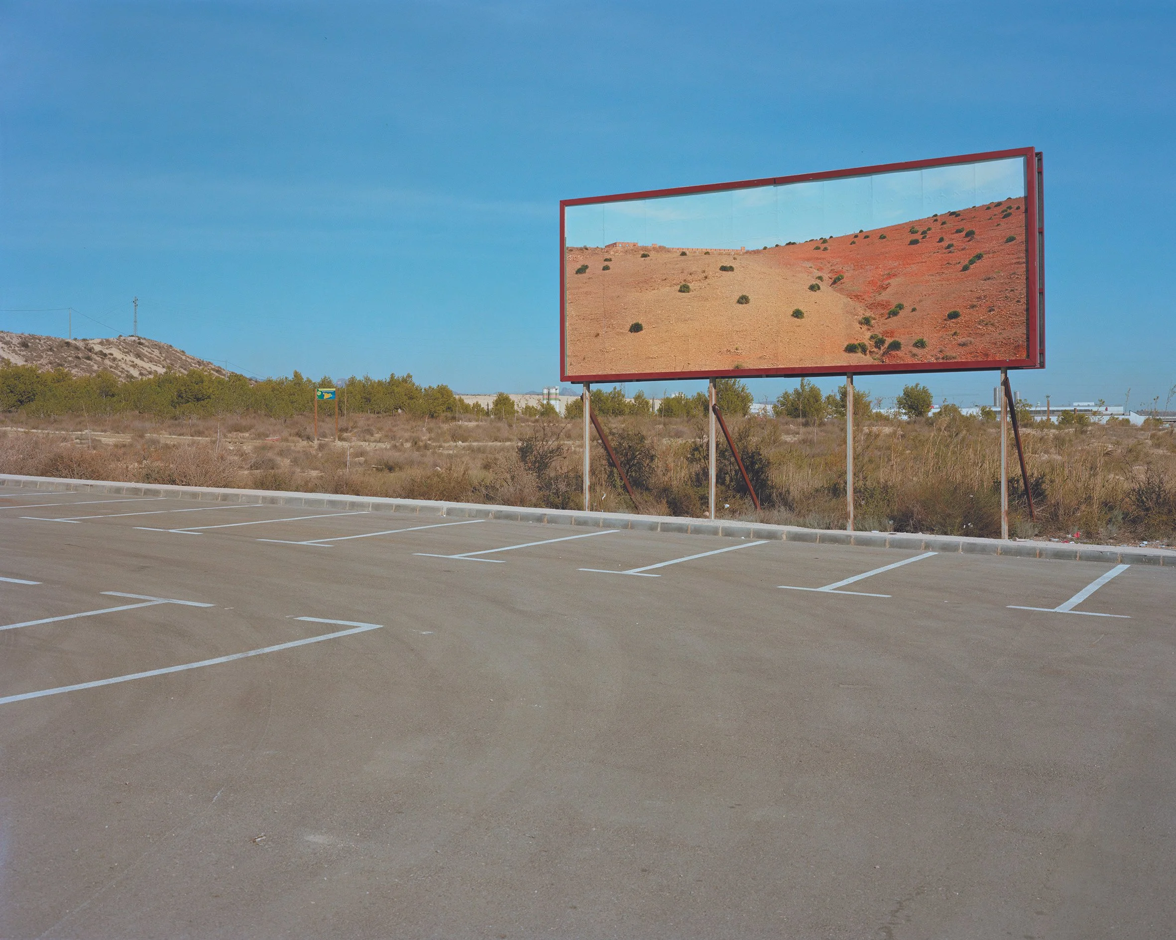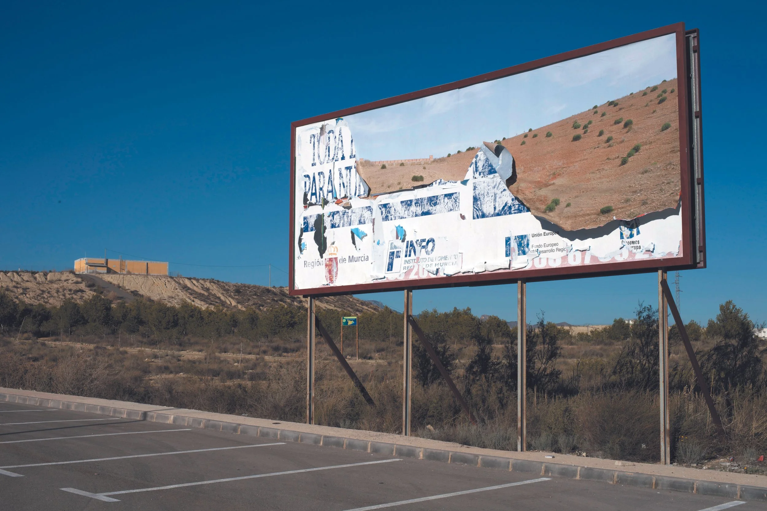 To consider these connected and overlapping Mediterranean landscapes Corinne Silva travelled along the northern Moroccan coast from Tangier towards the Algerian border, and made a series of landscape photographs. She then created an intervention in the Spanish landscape by installing three of these images on 8 by 3 metre billboards in specific locations in the region of Murcia.